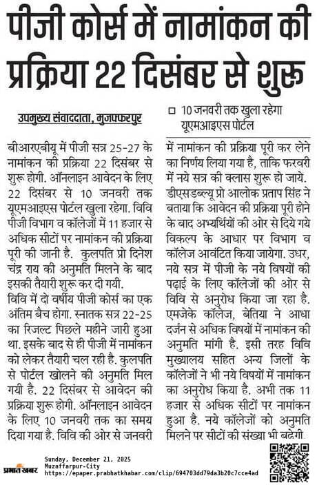 Article Name BRABU PG Admission 2025-27