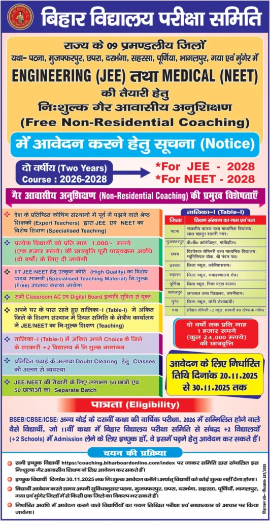 BSEB Super 50 Free Coaching 2026 Apply : BSEB Super 50 Free Coaching 2026 Apply