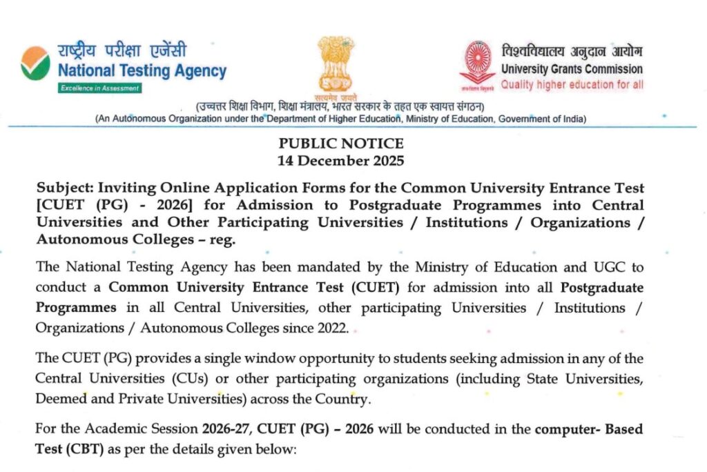| Examination | Common University Entrance Test CUET PG – 2026 |