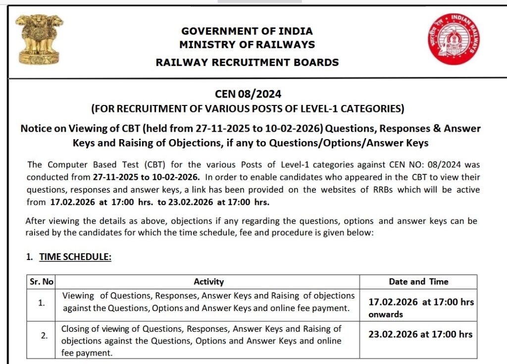 यदि किसी प्रश्न या उत्तर में गलती लगती है, तो RRB आपको आपत्ति दर्ज करने का मौका देता है।