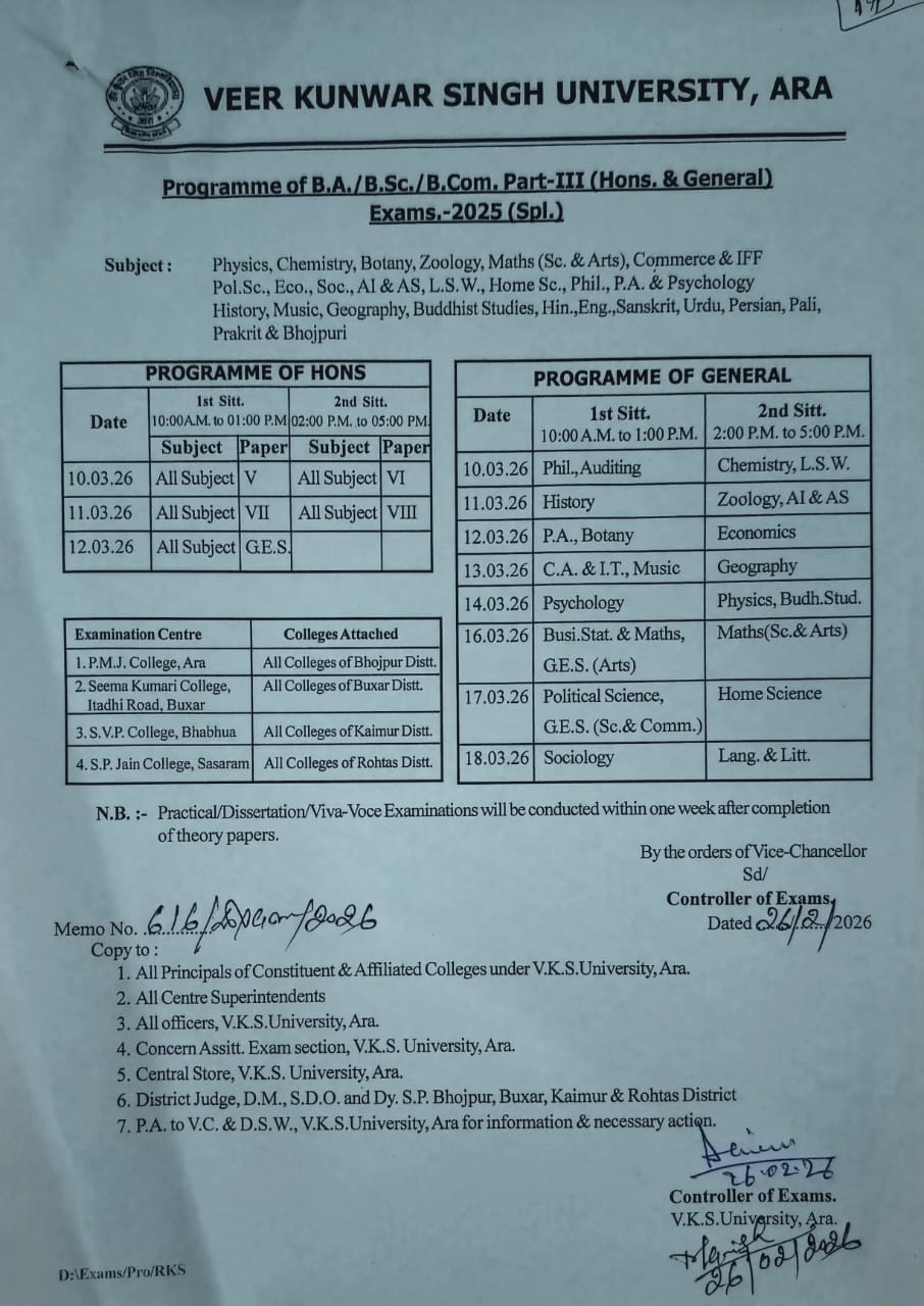 | University | Veer Kunwar Singh University, Ara (Bihar) |