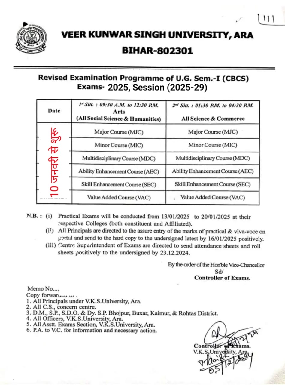 | Post Name | Vksu UG Semester 1 Exam Routine Session 2025-2029 |