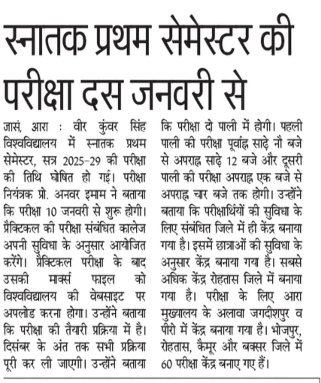 | To Know All The News Related To Veer Kunwar Singh University वीर कुंवर सिंह यूनिवर्सिटी से जुड़ी सभी खबर जानने के लिए | Click Here Quickly जल्दी यहां क्लिक करें |